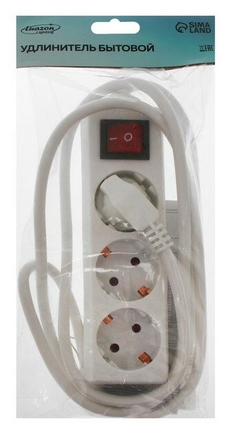 Отзывы на Удлинитель Luazon Lighting, 3 розетки, 1,8 м, 10 А, 2200 Вт, 3х1.5 мм2, с з/к, с выкл. 2791292
