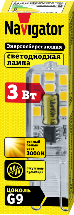 Светодиодная лампа Navigator 80 248, 3 Вт, цоколь G9, теплого света 3000К, упаковка 1 шт. информация: