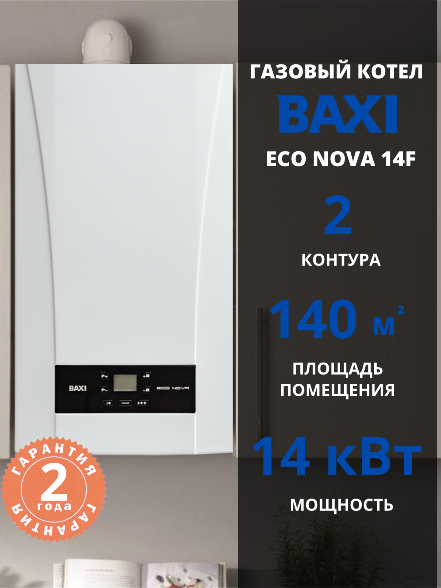 Настенный газовый котел BAXI ECO Nova 14 F (14 кВт), двухконтурный, закрытая камера сгорания, турбированный информация: