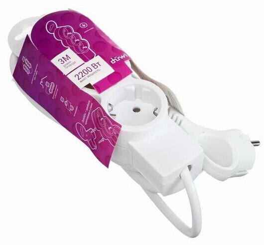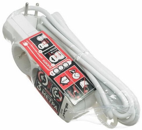 Отзывы на Удлинитель 3 розетки, 3 м, 10 А, 2200 Вт, ПВС 3x0.75 мм2, с заземлением, белый