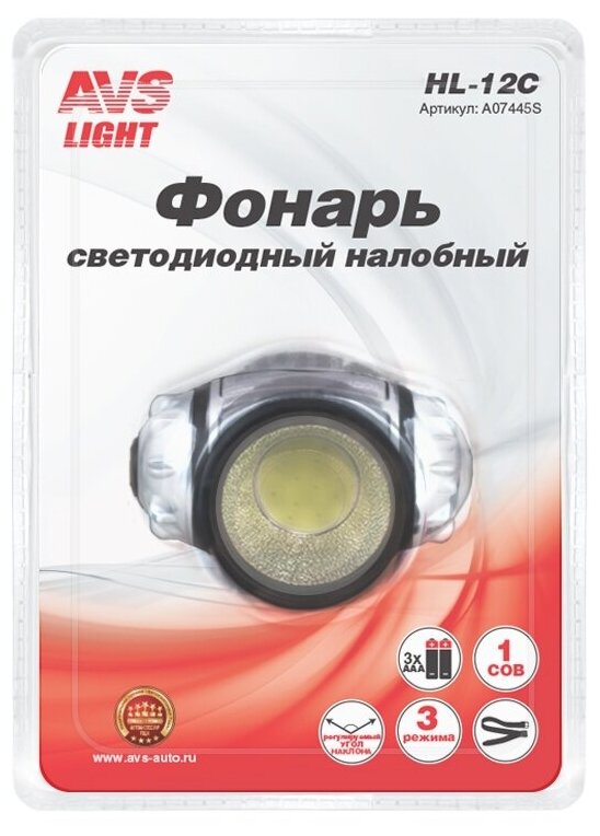 Отзывы на Налобный фонарь AVS Light "HL-12C", 1 светодиод, 120 люмен, питание от батареек AAA, IP54