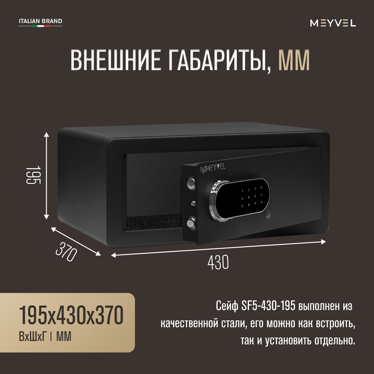 Сейф мебельный электронный Meyvel SF5-430-195 для денег и документов (встраиваемый /отдельностоящий тайник с кодовым замком для дома/офиса) информация: