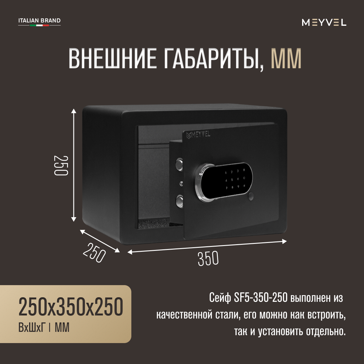 Сейф мебельный электронный Meyvel SF5-350-250 для денег и документов (встраиваемый /отдельностоящий тайник с кодовым замком для дома/офиса) информация: