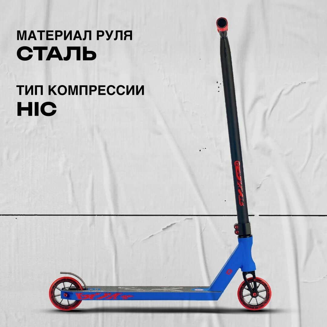 Отзывы на Самокат SKIP Goat (2023) трюковой, алюминиевая дека, стальной руль, красно-синий цвет, рост 155-165