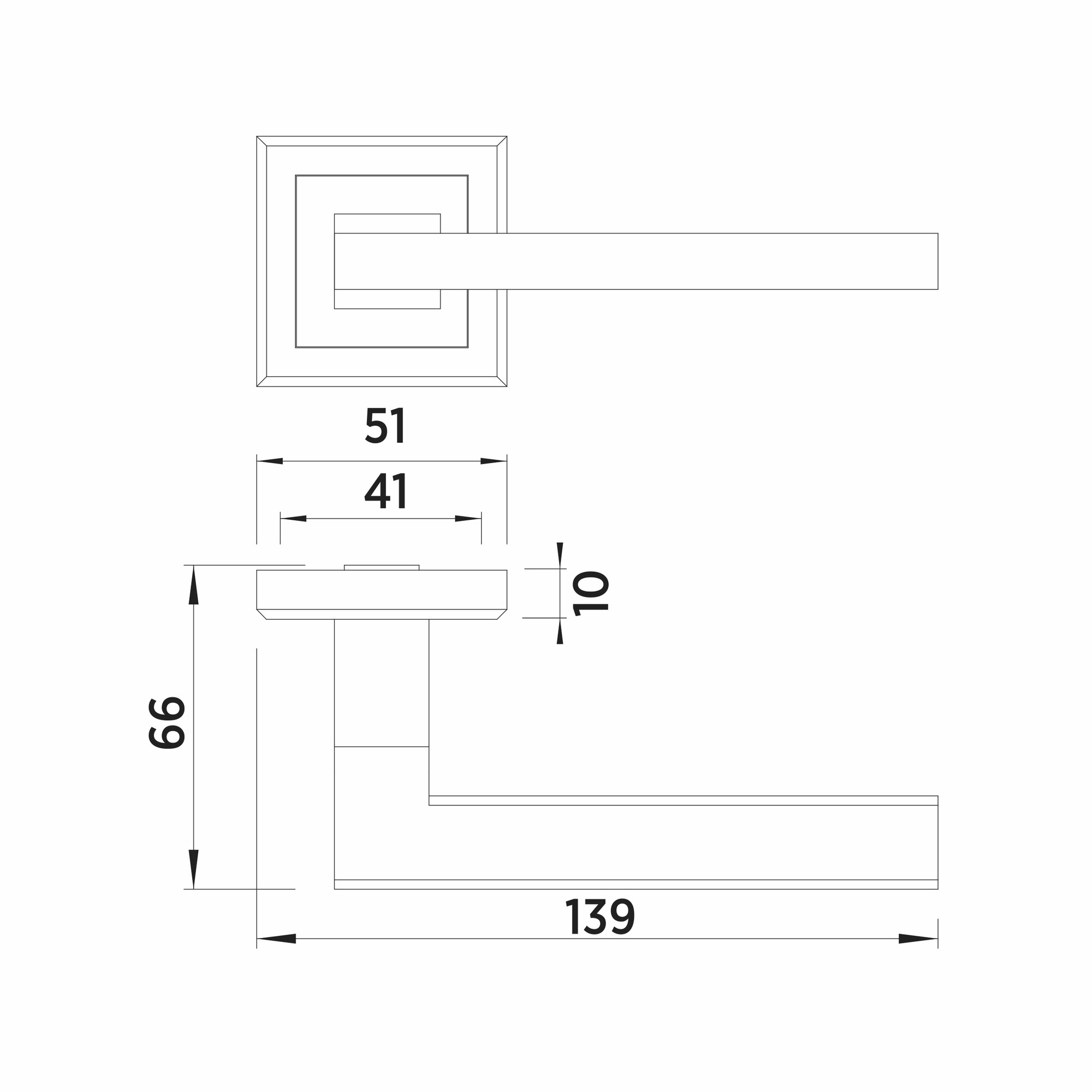 Ручки дверные на квадратной розетке Bussare PINADO A-31-30 CHROME/S.CHROME