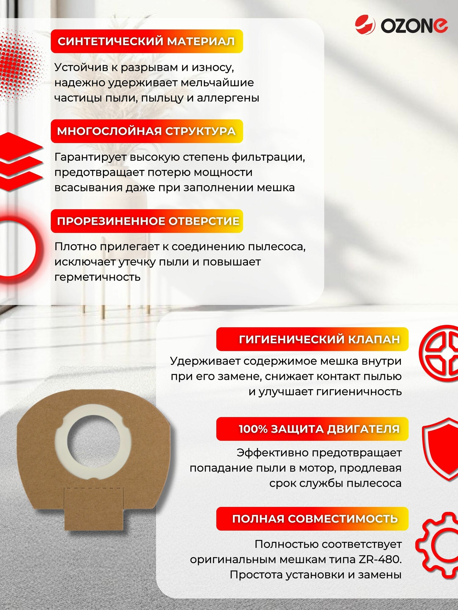 Мешки для пылесоса AEG одноразовые синтетические не боятся мокрой пыли, 5шт., бренд Ozone, арт.MXT-404/5