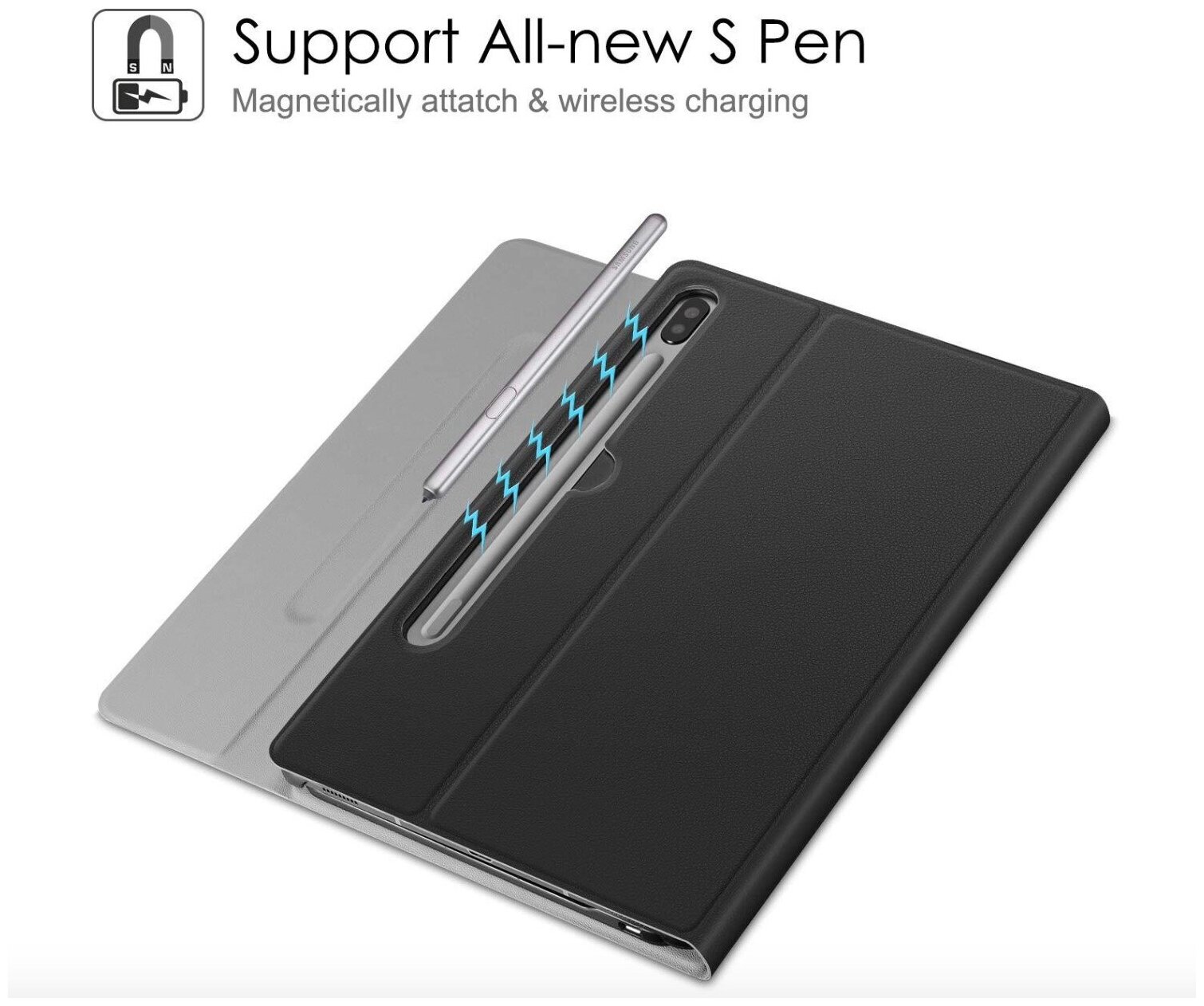 10 цен на Клавиатура MyPads для Samsung Galaxy Tab S6 10.5 SM-T860 / T865 съемная беспроводная Bluetooth в комплекте c кожаным чехлом и пластиковыми наклей.