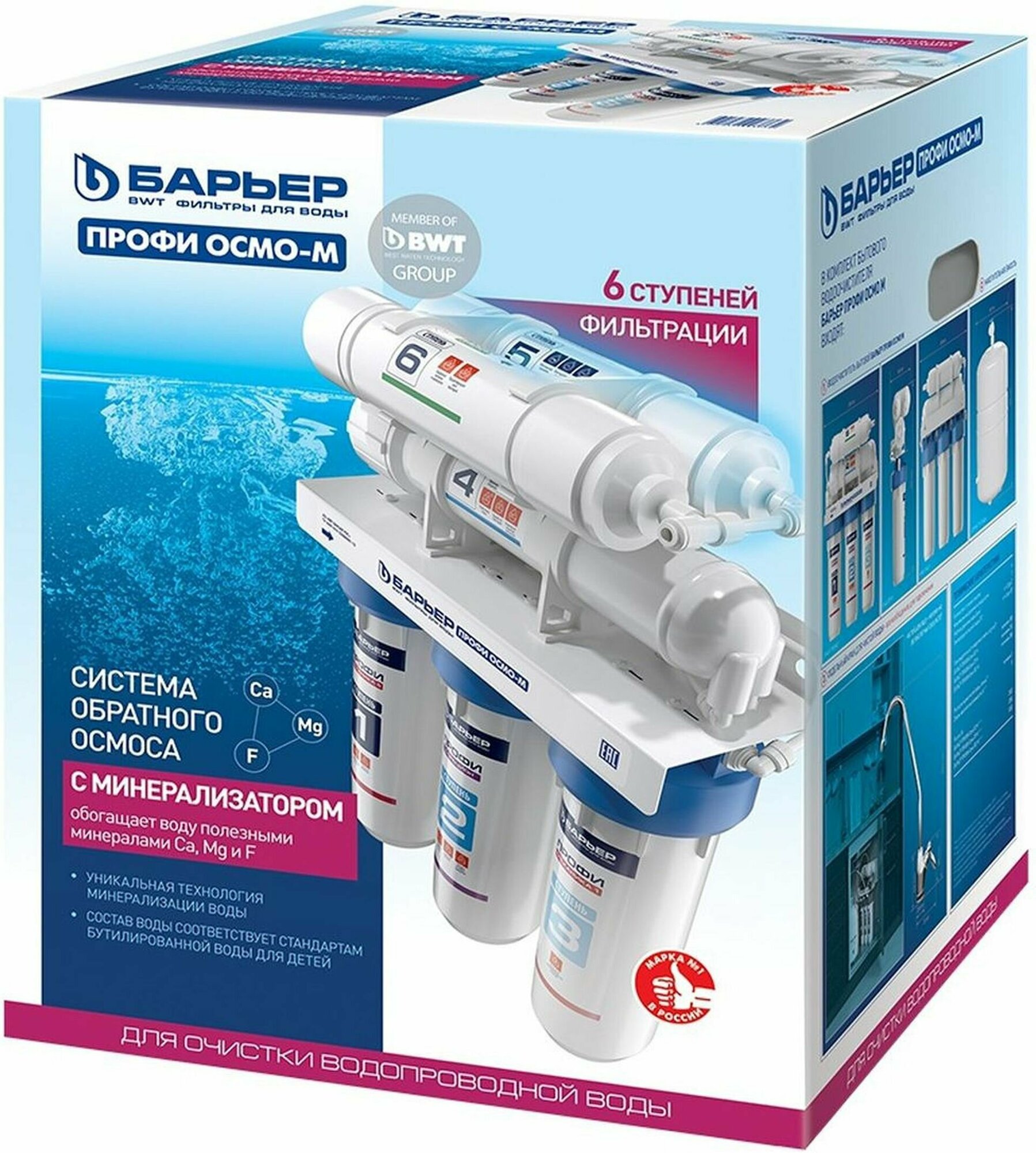 Отзывы на Комплект оборудования c механической фильтрацией, минерализацией, обратным осмосом, сорбция, умягчением Барьер профи для жесткой воды 6 ступеней