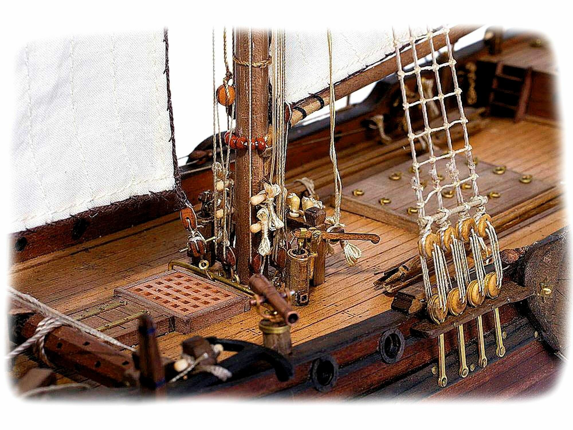 | Комплектация | -деревянные пластины с вырезанными лазером деталями / которые держатся в пластинах перемычками шириной 0,5 мм; - литые из металла / черненные пушки и якоря; - фототравленные из латуни детали; - тонкая х/б ткань и выкройки для пошива парусов; - детали рангоута; - подробная цветная пошаговая фотоинструкция для сборки корпуса; - подробная инструкция по постройке / чертежи / схемы / спецификация |