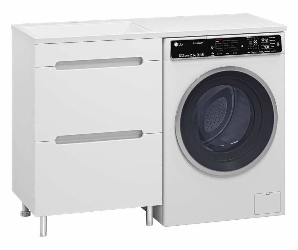 Респект -120 Тумба с 3 ящ. под стиральную машину левая (белая ПВХ/Дуб Тиссано) / раковина 43 125 ₽