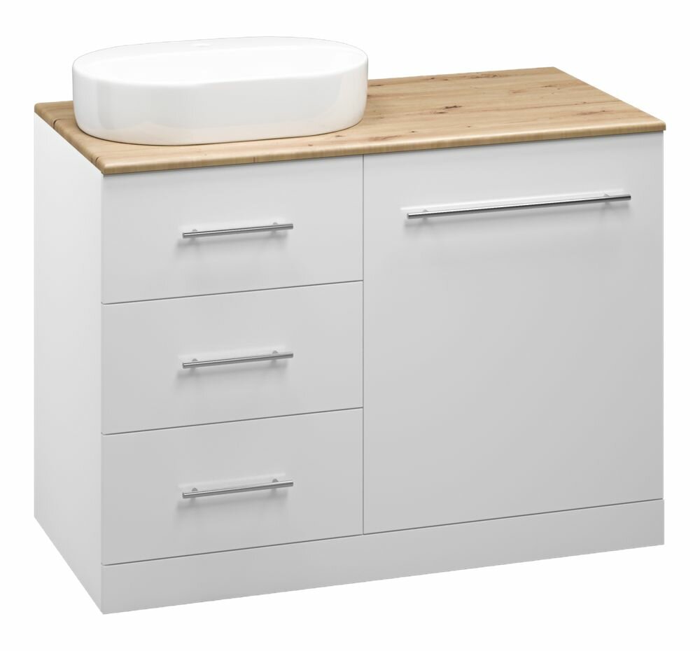 Респект -120 Тумба с 3 ящ. под стиральную машину левая (белая ПВХ/Дуб Тиссано) / раковина 43 125 ₽