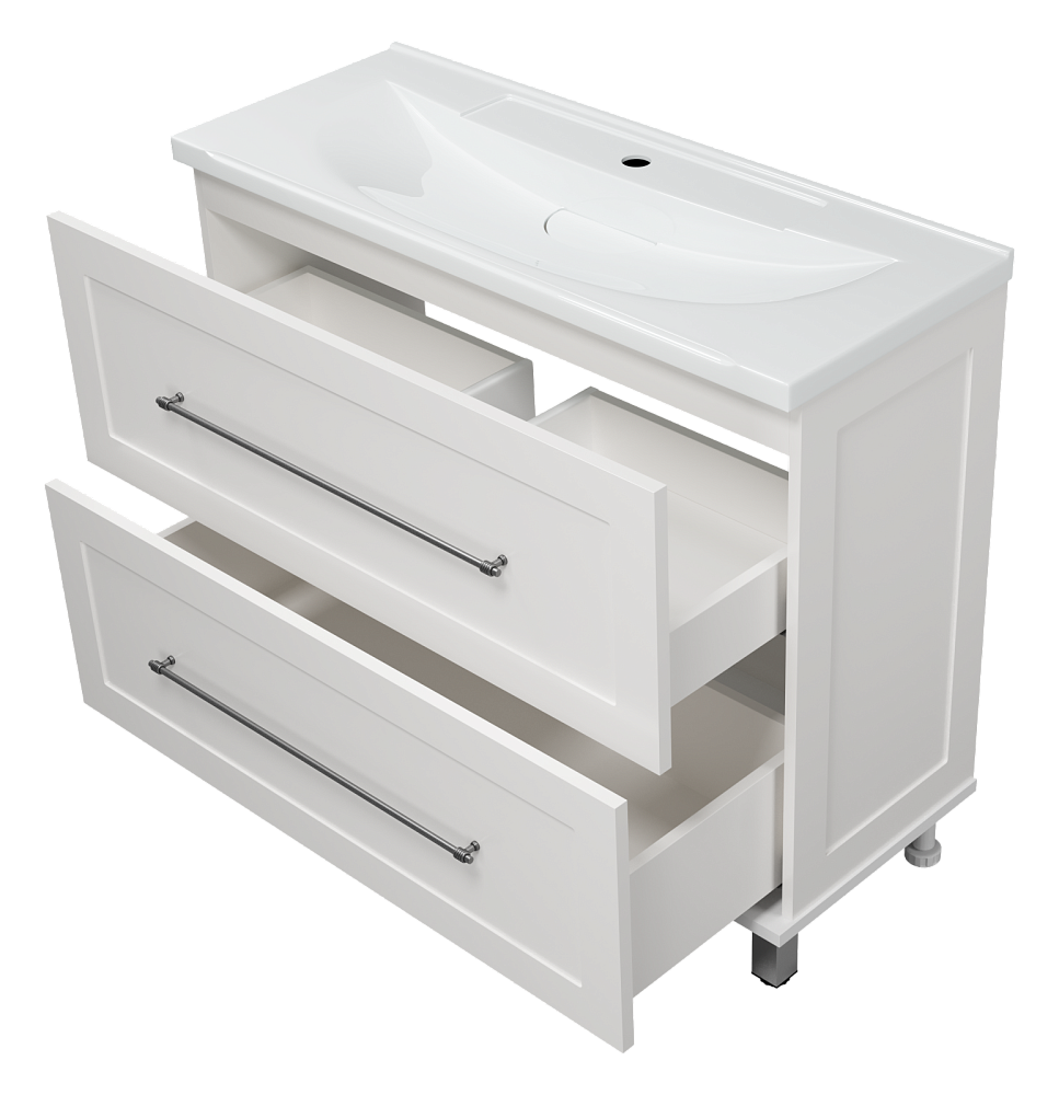 Тумба с раковиной Misty Дива 105 с 2 ящиками белая, напольная