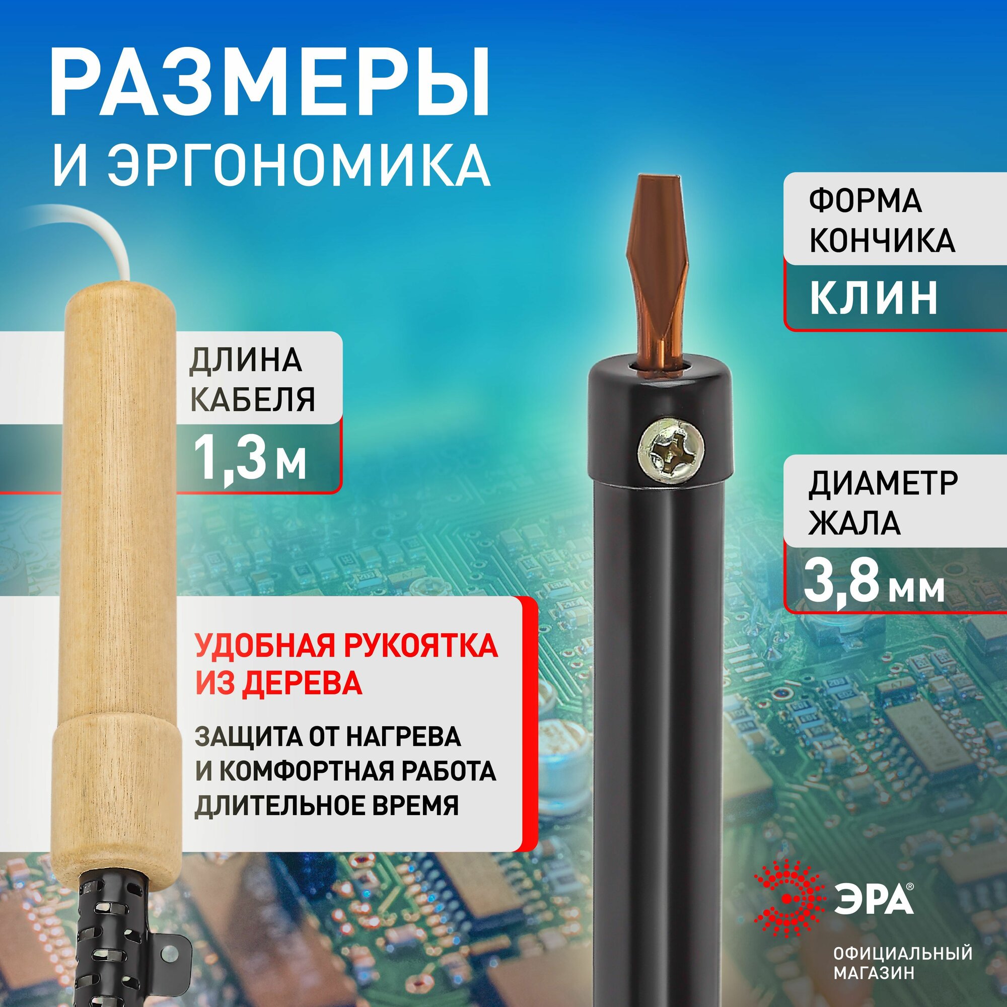 Pl-r01-100w эра паяльник с деревянной рукояткой эпсн 230 в 100 вт эра, 1шт