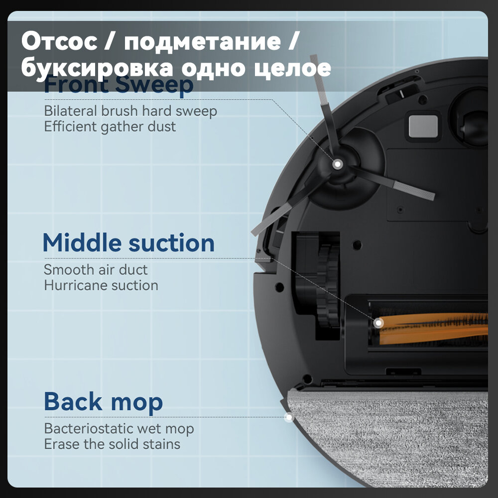 Мощный робот пылесос для сухой и влажной уборки Lydsto R1D EDGE / Моющий пылесос для дома / Версия на русском языке