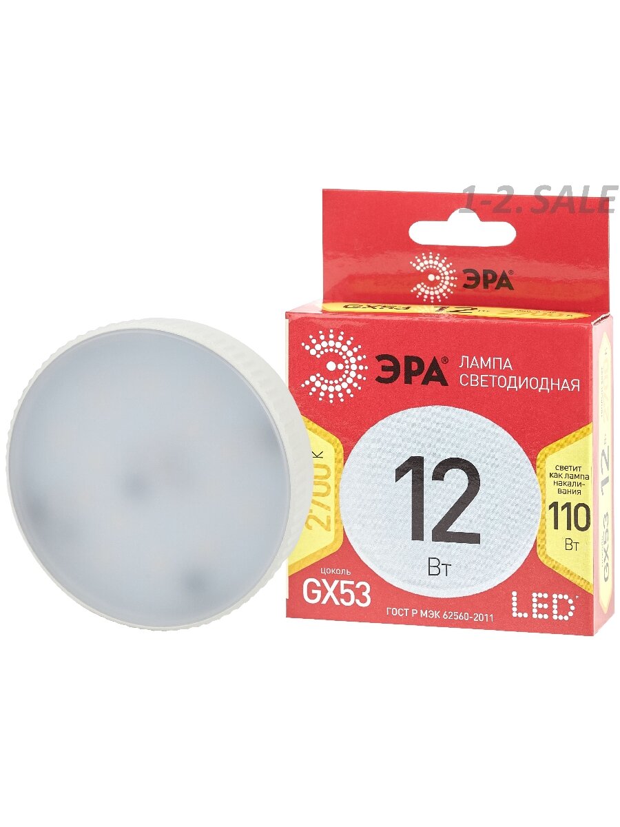 10 цен на (3 шт.) Светодиодная лампочка ЭРА ECO GX53 12W(960Lm) 2700K 2K 22х75 GX-12W-827-GX53 R 8785 Теплый белый. Цоколь GX53