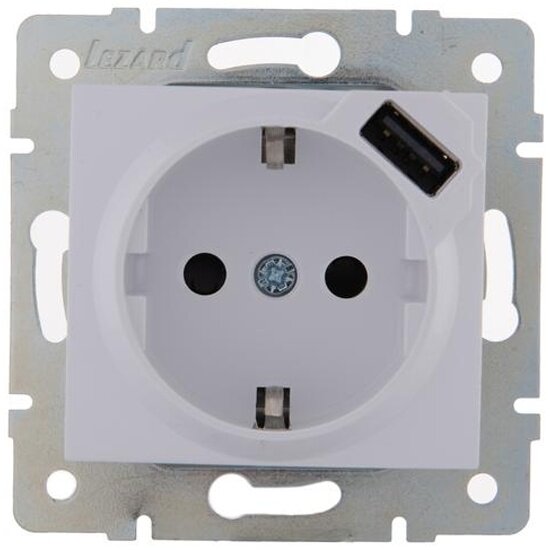 Розетка + USB Lezard Karina, встраиваемая, с/з, белый