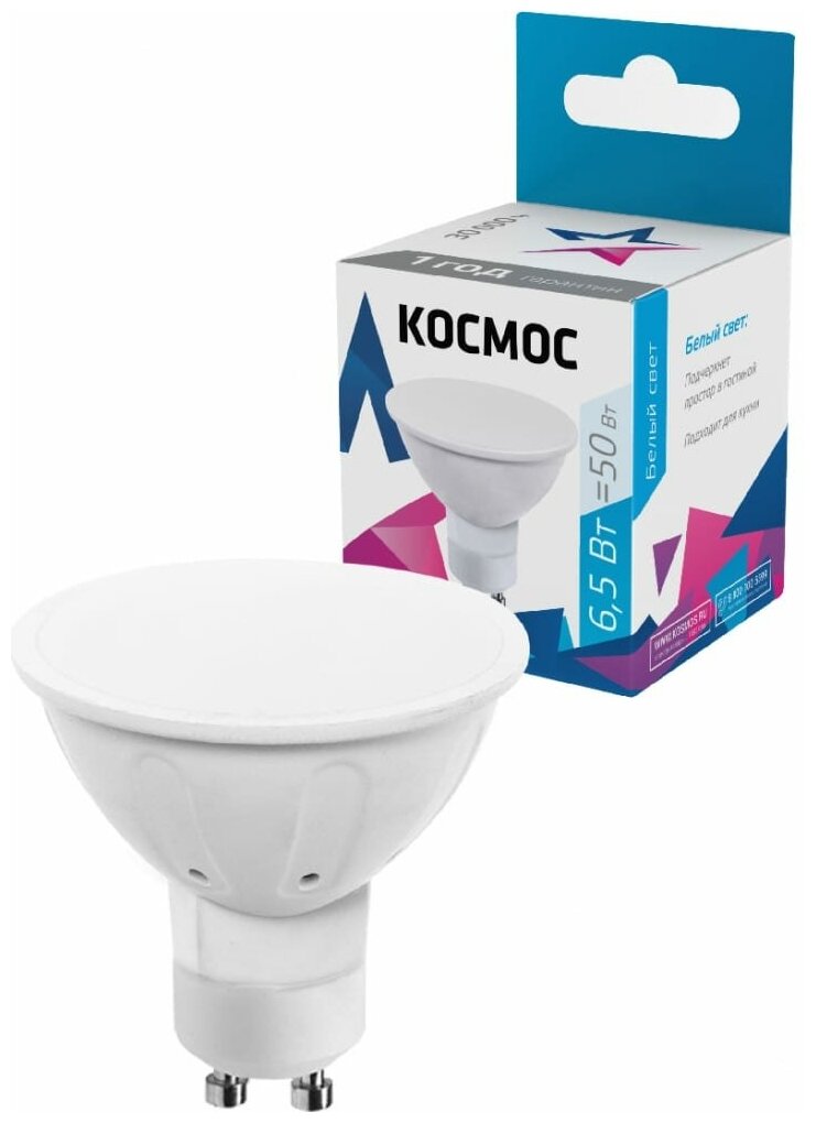 10 цен на Лампа светодиодная GU10 6.5Вт 220В 4500К Космос LkecLED6.5wGU10C45 (70шт. в упак.)