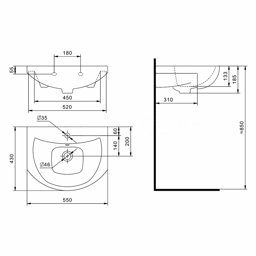 10 цен на Раковина Santek Балтика-55 1WH501702, фаянс, белый, накладная, отверстие под смеситель
