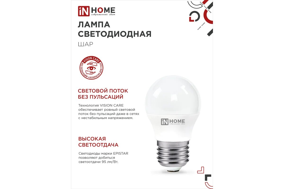 Отзывы на Лампа светодиодная IN HOME LED-ШАР-VC 14Вт 230В E27 4000K 1330Лм 4690612047829