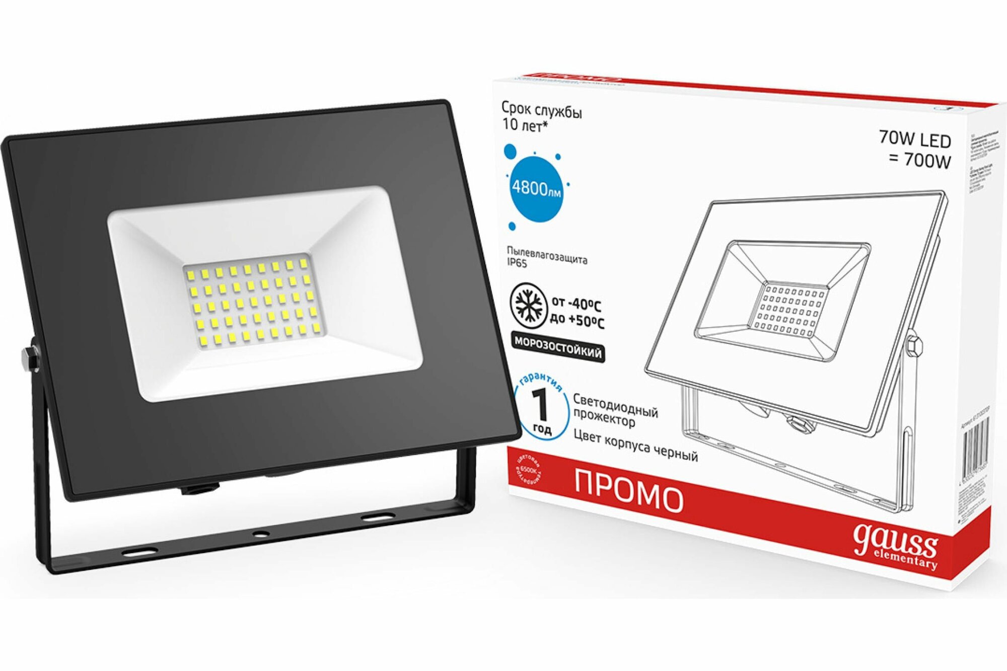 Отзывы на Прожектор уличный Gauss Elementary 613100370 светодиодный 70Вт корп. алюм. черный