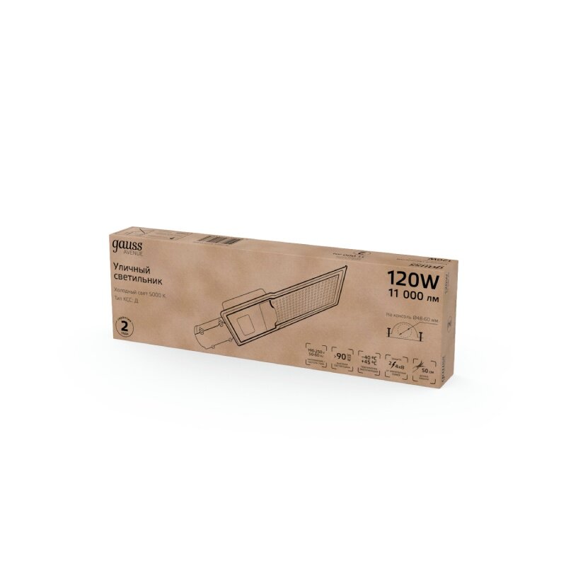 Светильник уличный Gauss Avenue 120Вт, 5000K, 11000лм, IP65, Д информация: