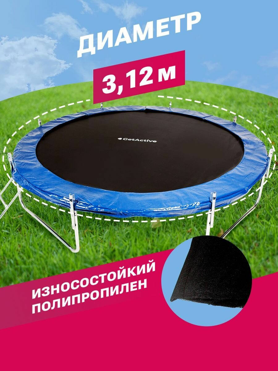 Отзывы на Батут детский каркасный GetActive Jump 10FT 10464F2Y-L с защитной сеткой и лестницей, складной манеж для улицы, дачи и дома, игровой спортивный комплекс, джампинг, диаметр 312 см, синий