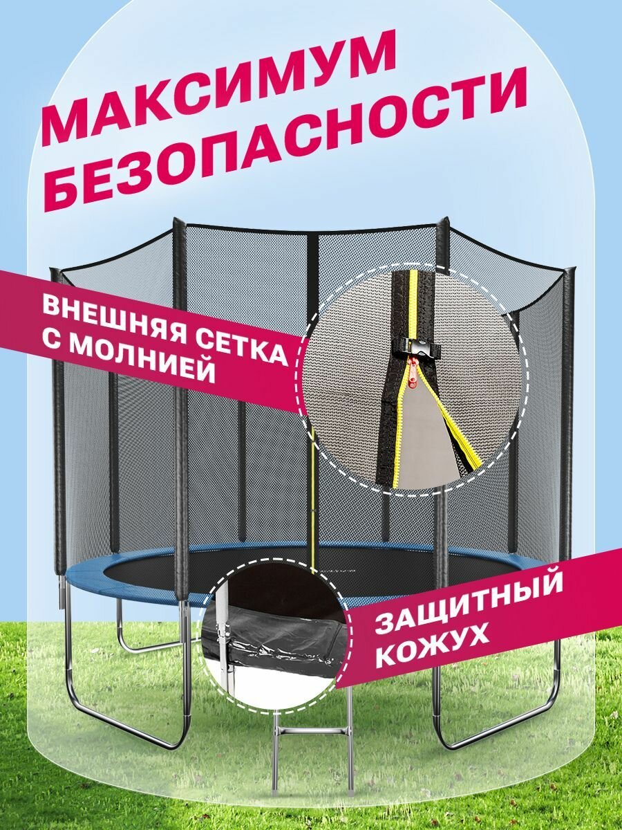 Батут детский каркасный GetActive Jump 10FT 10464F2Y-L с защитной сеткой и лестницей, складной манеж для улицы, дачи и дома, игровой спортивный комплекс, джампинг, диаметр 312 см, синий информация: