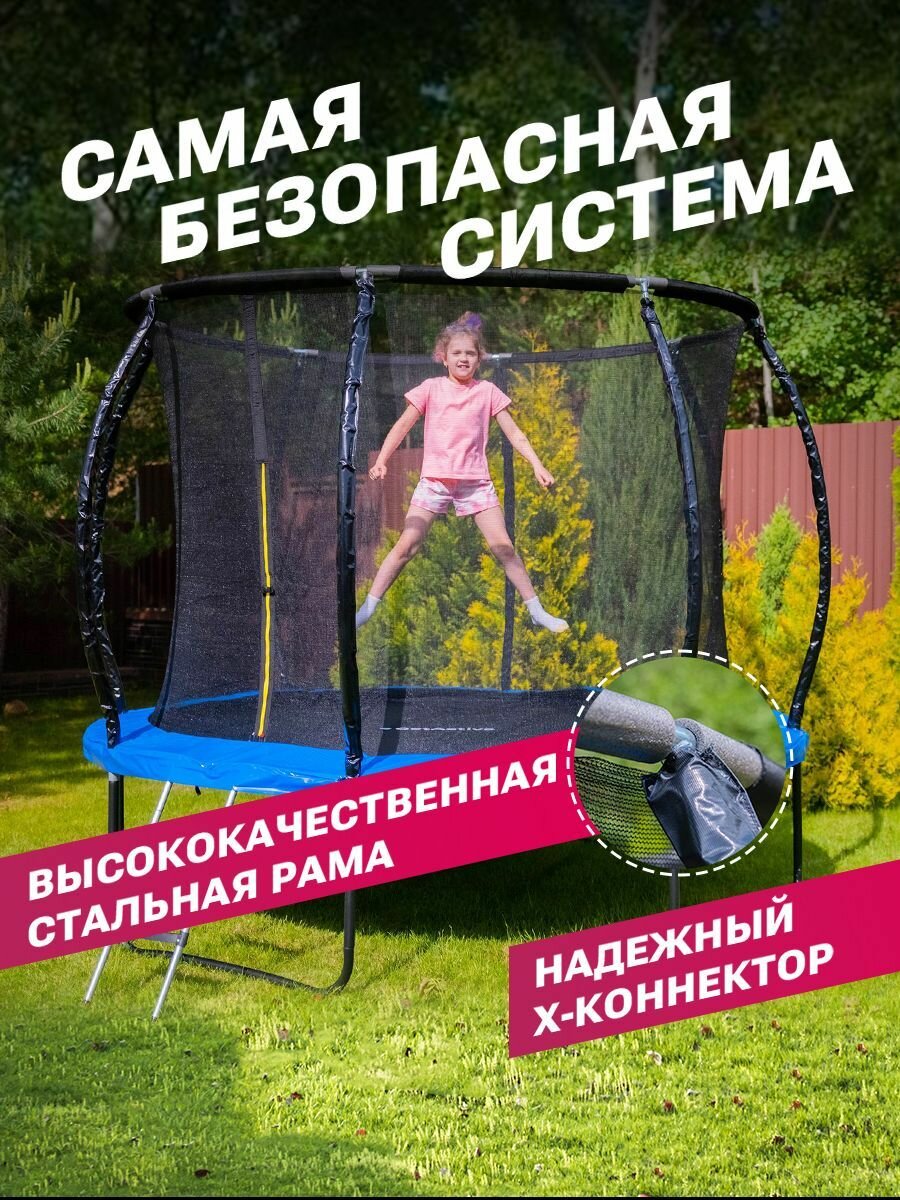 Батут детский каркасный GetActive Jump PRO 10FT 10464A2M-L с защитной сеткой и лестницей, большой, манеж для улицы, дачи и дома, игровой спортивный комплекс, джампинг, диаметр 305 см, синий информация: