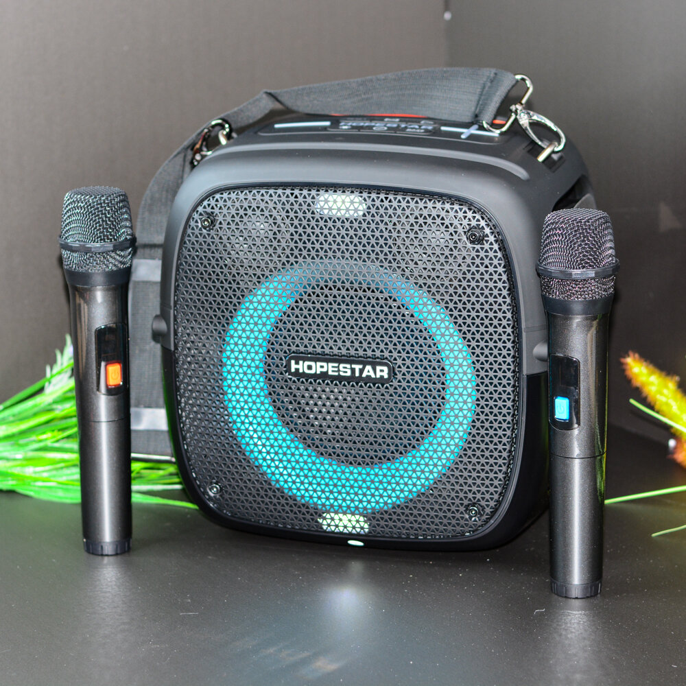 Портативная Колонка Hopestar Party One Black с двумя беспроводными микрофонами, Чёрная
