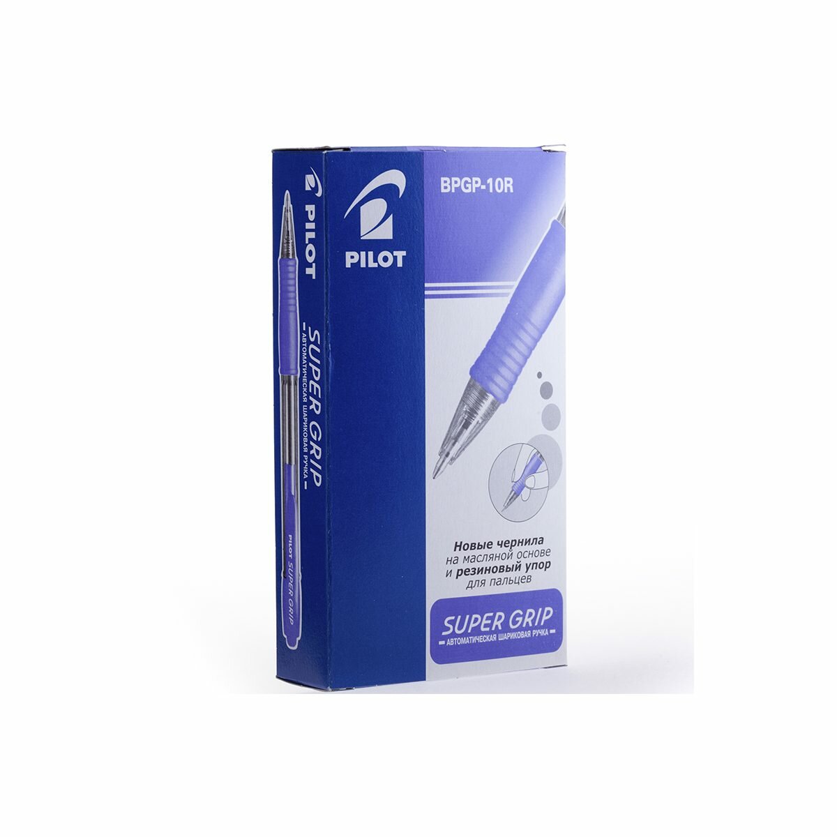 Ручка шариковая автоматическая Pilot Super Grip (0.32мм, синяя, масляная основа, корпус синий) (BPGP-10R-F-L), 1шт. информация: