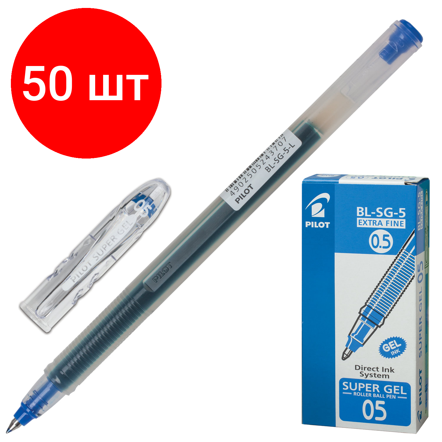 10 цен на Комплект 50 шт, Ручка гелевая PILOT "Super Gel", синяя, корпус прозрачный, узел 0.5 мм, линия письма 0.3 мм, BL-SG-5