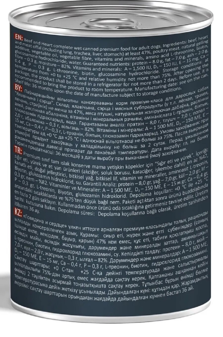 MR.BUFFALO ADULT DOG BEEF & HEART для взрослых собак всех пород с говядиной и сердцем банка 400грNEW 400 гр х 6 шт