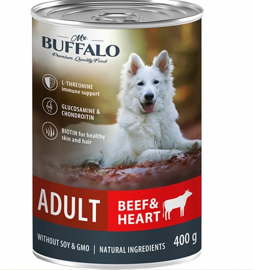 MR.BUFFALO ADULT DOG BEEF & HEART для взрослых собак всех пород с говядиной и сердцем банка 400грNEW 400 гр х 6 шт