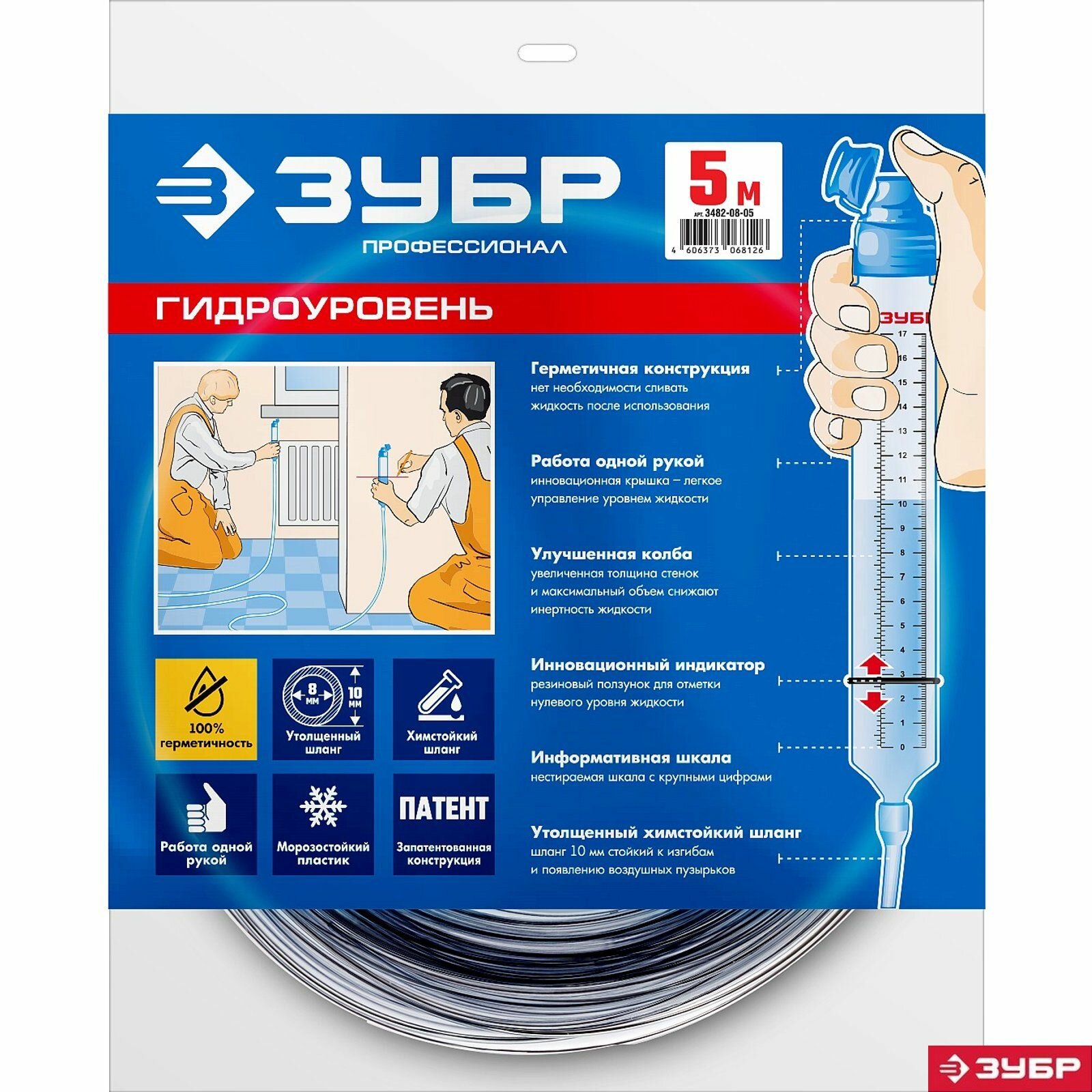 ЗУБР 5 м, d 8 мм, гидроуровень, Профессионал (3482-08-05)