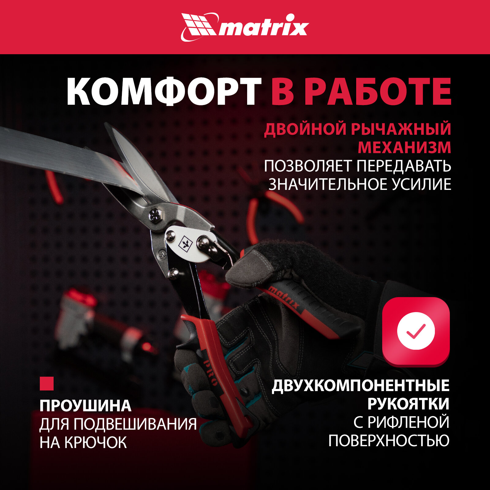 Ножницы по металлу, удлиненные, 290 мм, прямой рез, CrMo, двухкомпонентные обрезиненные рукоятки, PRO Matrix 1 051 ₽