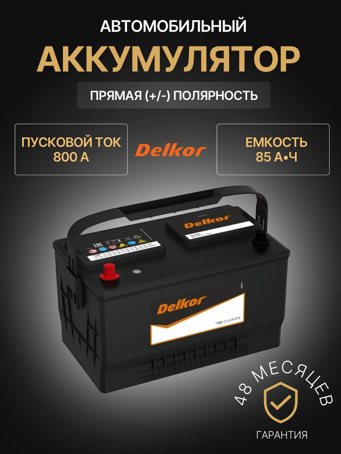Аккумулятор автомобильный Delkor 65-850 12В 85Ач 850А информация: