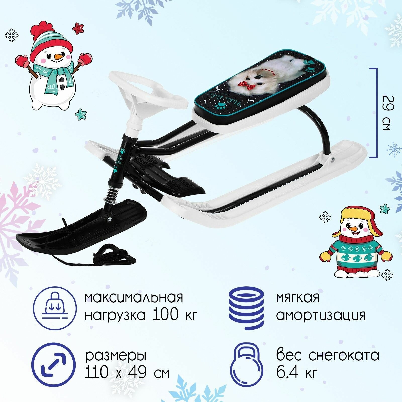 Снегокат тимка спорт 2+ до 100 кг NIKA ТС2+/БЛ С болонкой