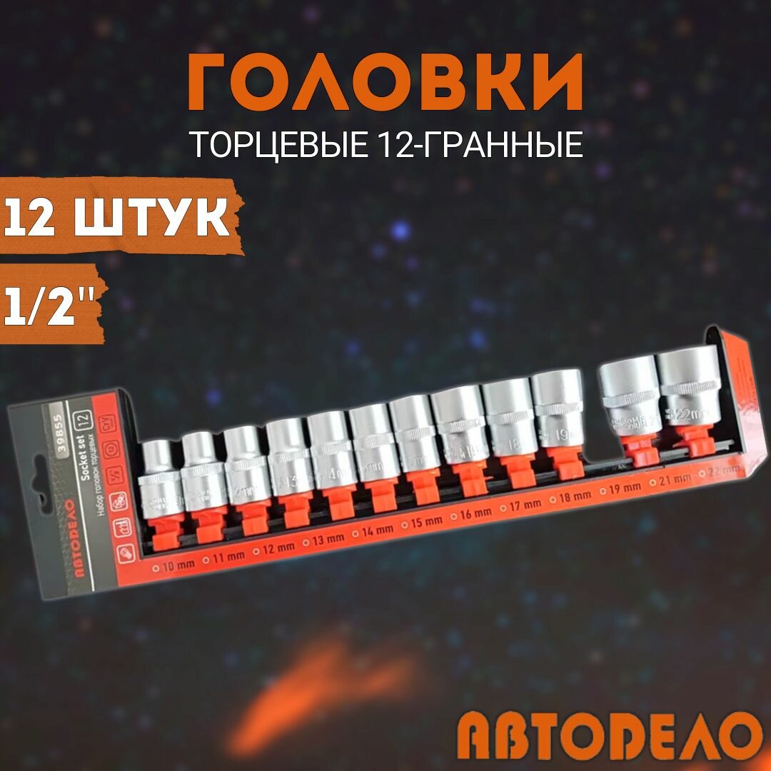 Головки комплект 12пр 1/2 12РТ 10-22мм холдер АвтоDело 39855
