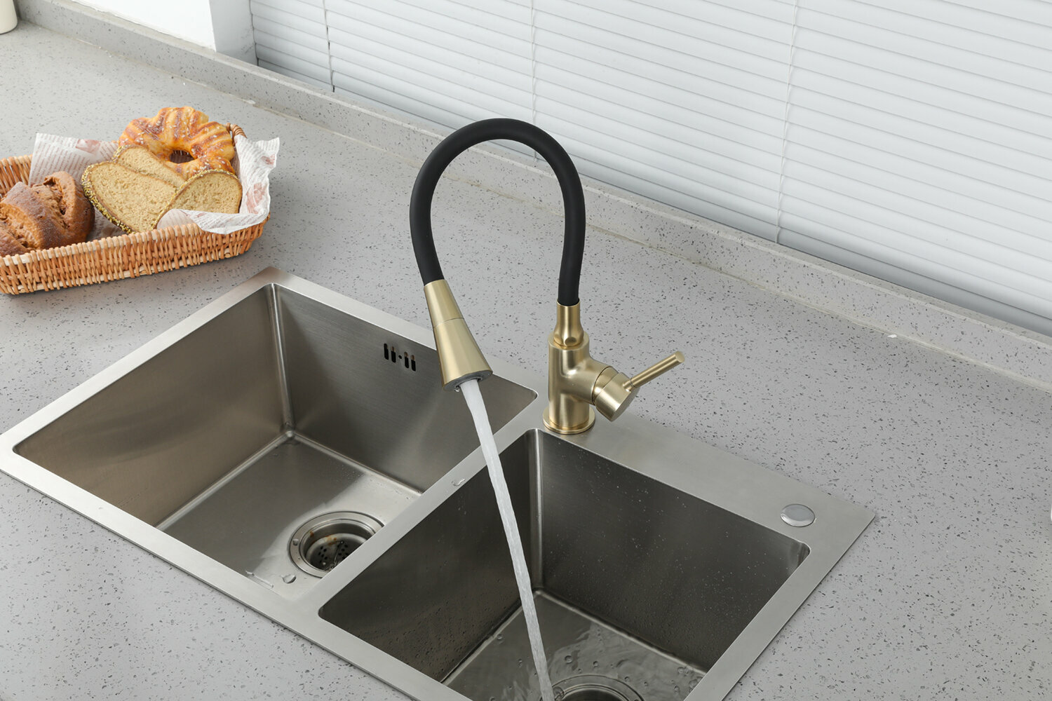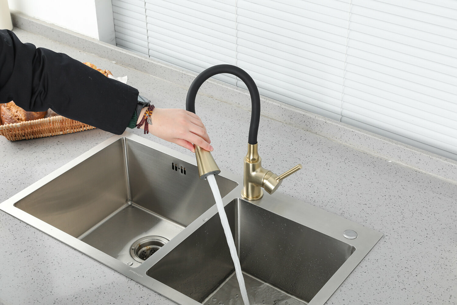 Отзывы на Смеситель для кухни с гибким изливом Frap F4044-3, матовое золото/черный