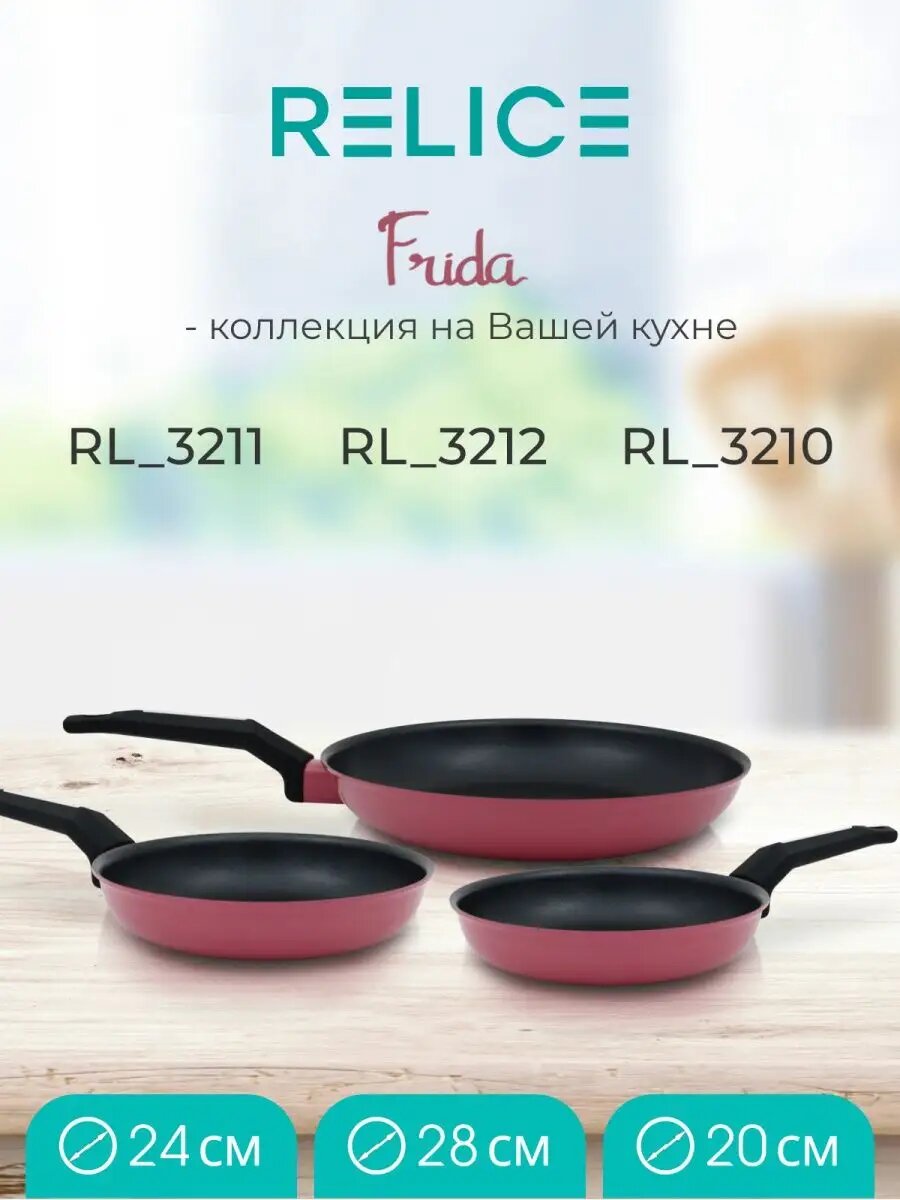 Кастрюля алюминиевая с крышкой RELICE RL-3215 Frida с антипригарным покрытием, 24 см, 4 л