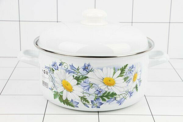 Кастрюля эмаль 4.5Л ромашковое поле низкая лысьва