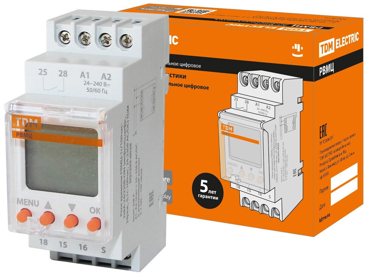 Реле времени РВМЦ-1с/100час-2х8А-24/230В-DIN (мнф. цифр, 24реж, 1с-100час, 24-230В АС/DC) TDM SQ1503-0026 информация: