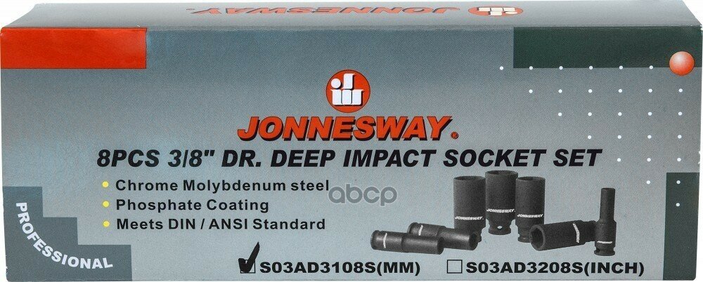 S03ad3108s_набор Головок! Торцевых Ударных Глубоких 3/8'Dr, 10-19 Мм, 8 Предметов Jonnesway Арт. S03ad3108s Jonnesway арт. S0...