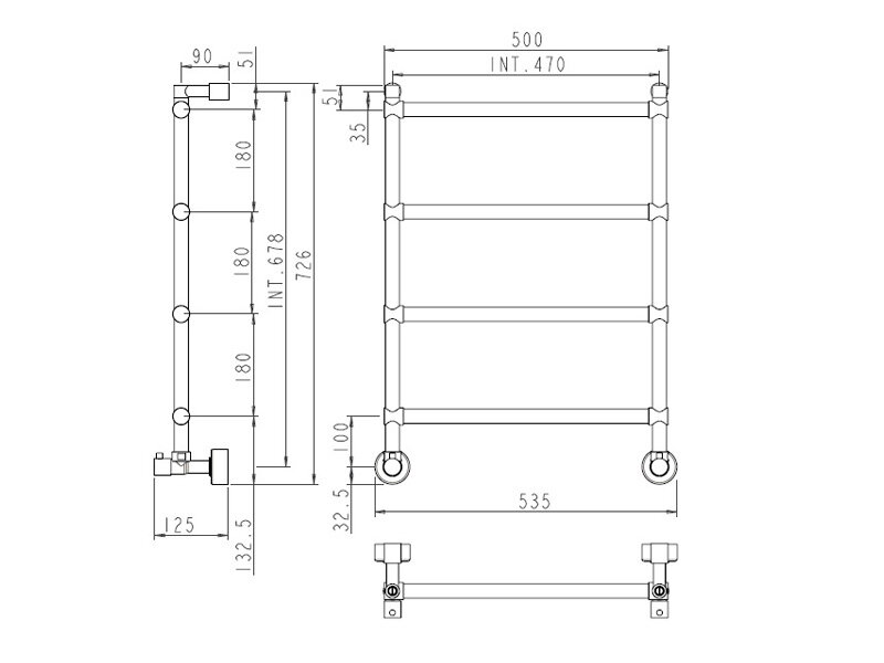 Полотенцесушитель Водяной узкий с полкой Di Kron, модель Premium-T 800х400 боковое подключение 50 см слева угловое