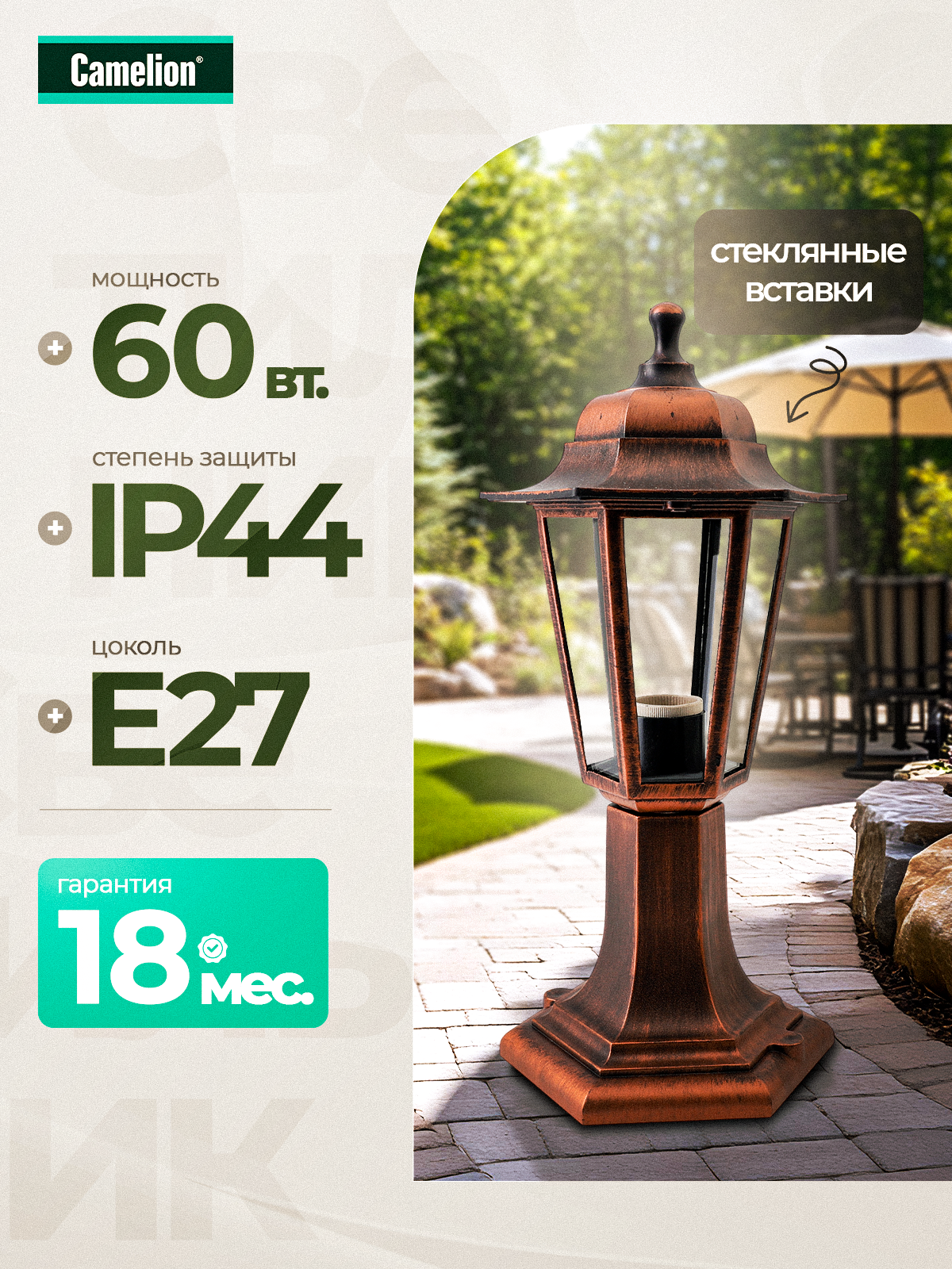 Светильник садово-парковый Camelion "Оскар 1", 60 Вт, стекло/пластик, бронза информация:
