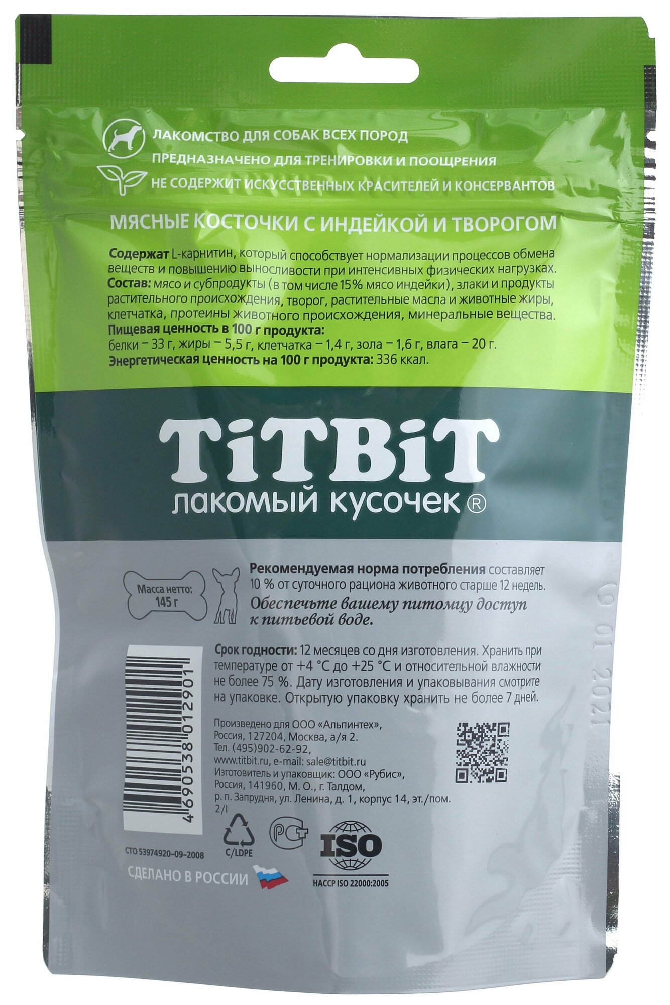 TitBit Косточки мясные для собак с индейкой и творогом 145г