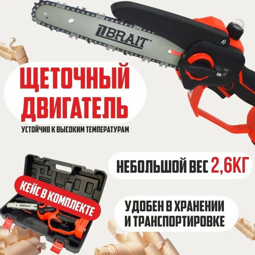 Пила аккумуляторная цепная мини BRAIT BCHS20-2NM, в комплекте АКБ 2Ah (1шт), кейс и зарядка 7 979 ₽