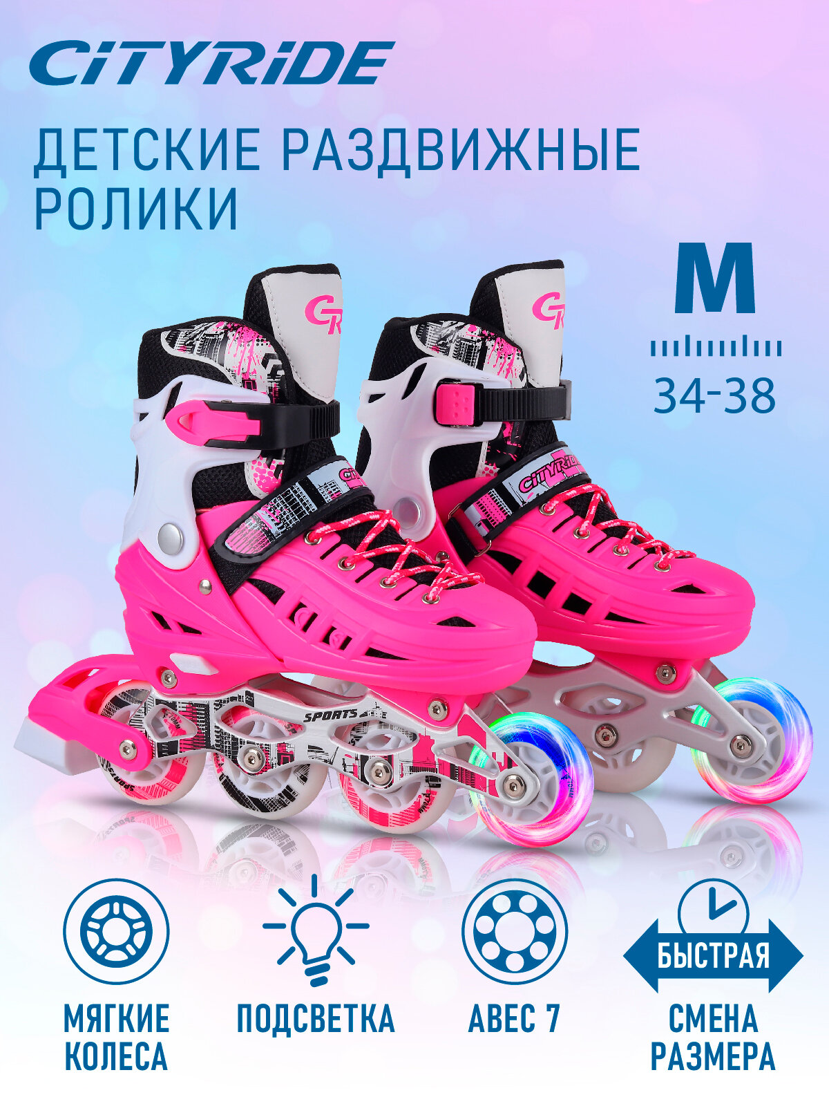 Роликовые коньки детские CITYRIDE, PU колеса/первое светится, ABEC 7, размер М (34-38), раздвижные, JB8800084/M(34-38) 5 110 ₽