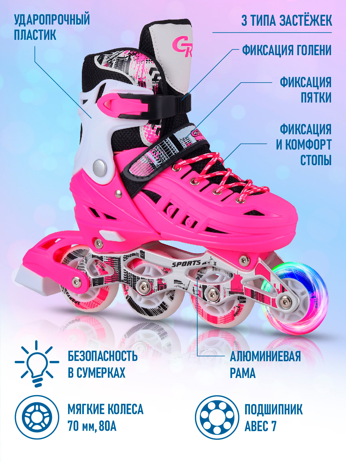 10 цен на Роликовые коньки детские CITYRIDE, PU колеса/первое светится, ABEC 7, размер М (34-38), раздвижные, JB8800083/M(34-38)
