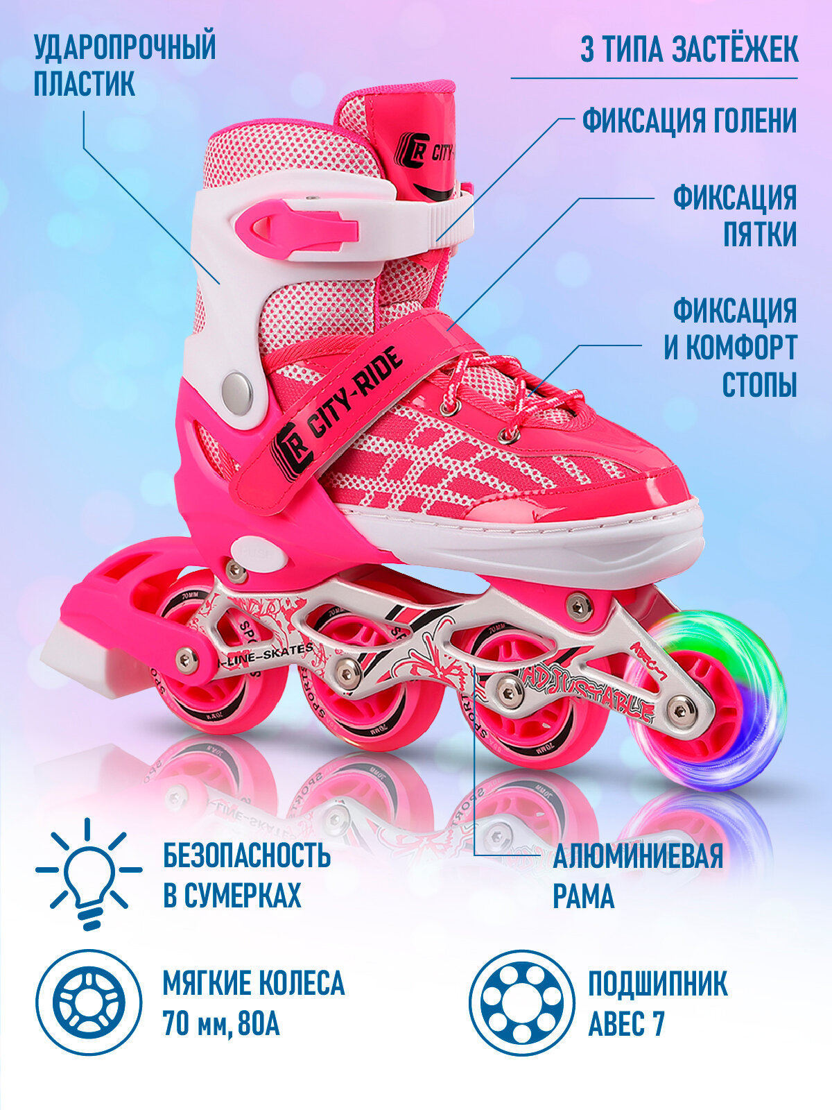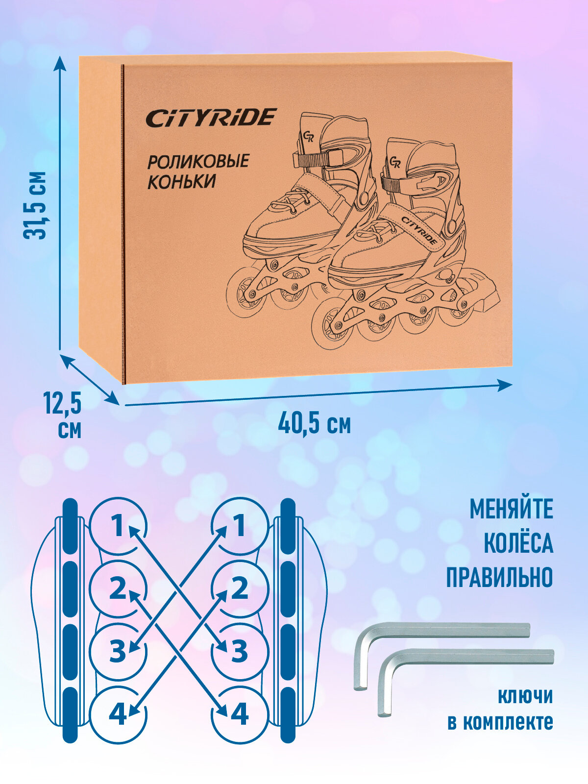 Роликовые коньки детские CITYRIDE, PU колеса/первое светится, ABEC 7, размер М (34-38), раздвижные, JB8800084/M(34-38) 5 110 ₽